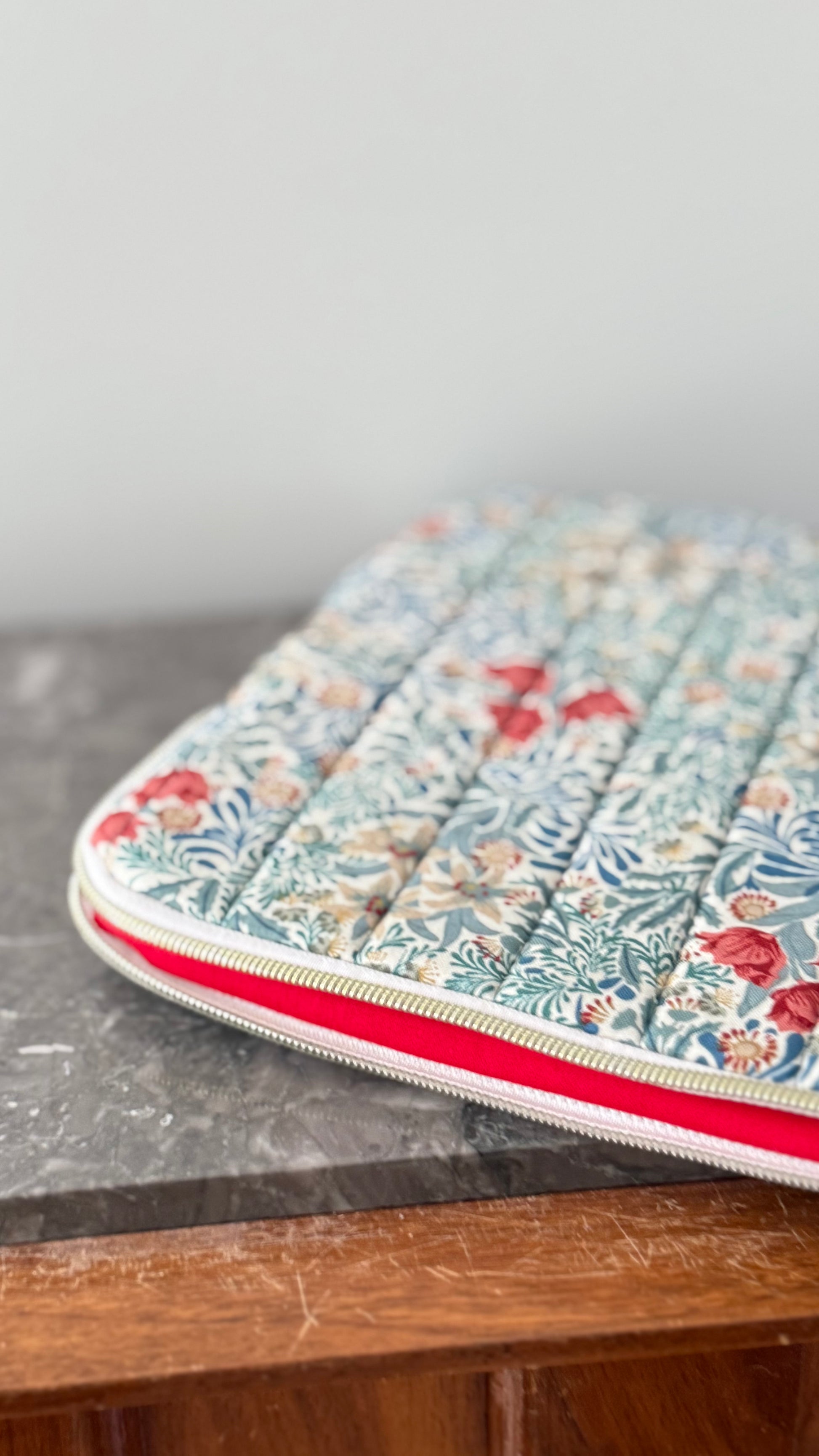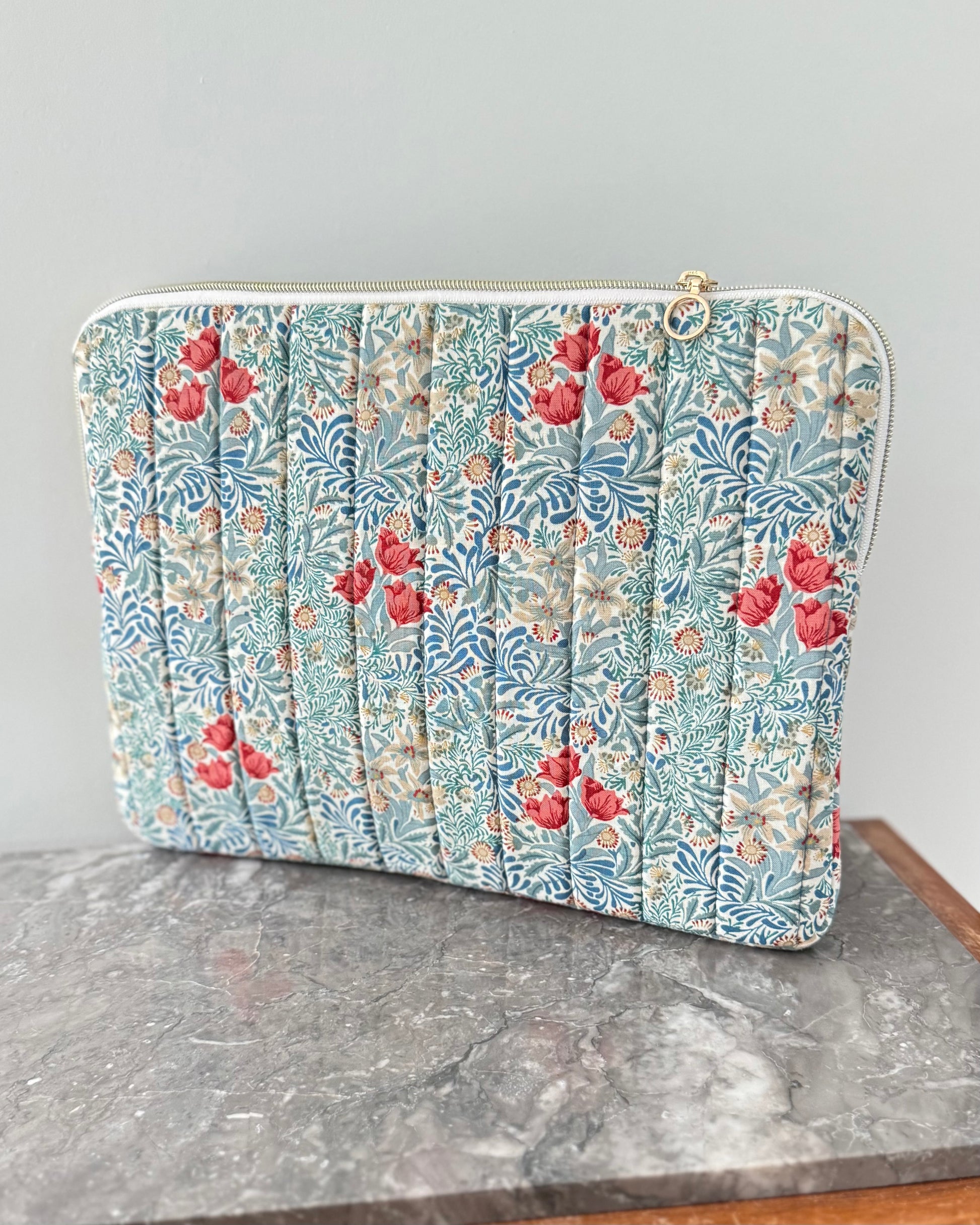 Confectionnée dans mon atelier proche de Lille, cette housse 13 pouces met à l’honneur les motifs emblématiques de William Morris. Élégante et pratique, elle vous accompagne partout en protégeant votre appareil avec style.