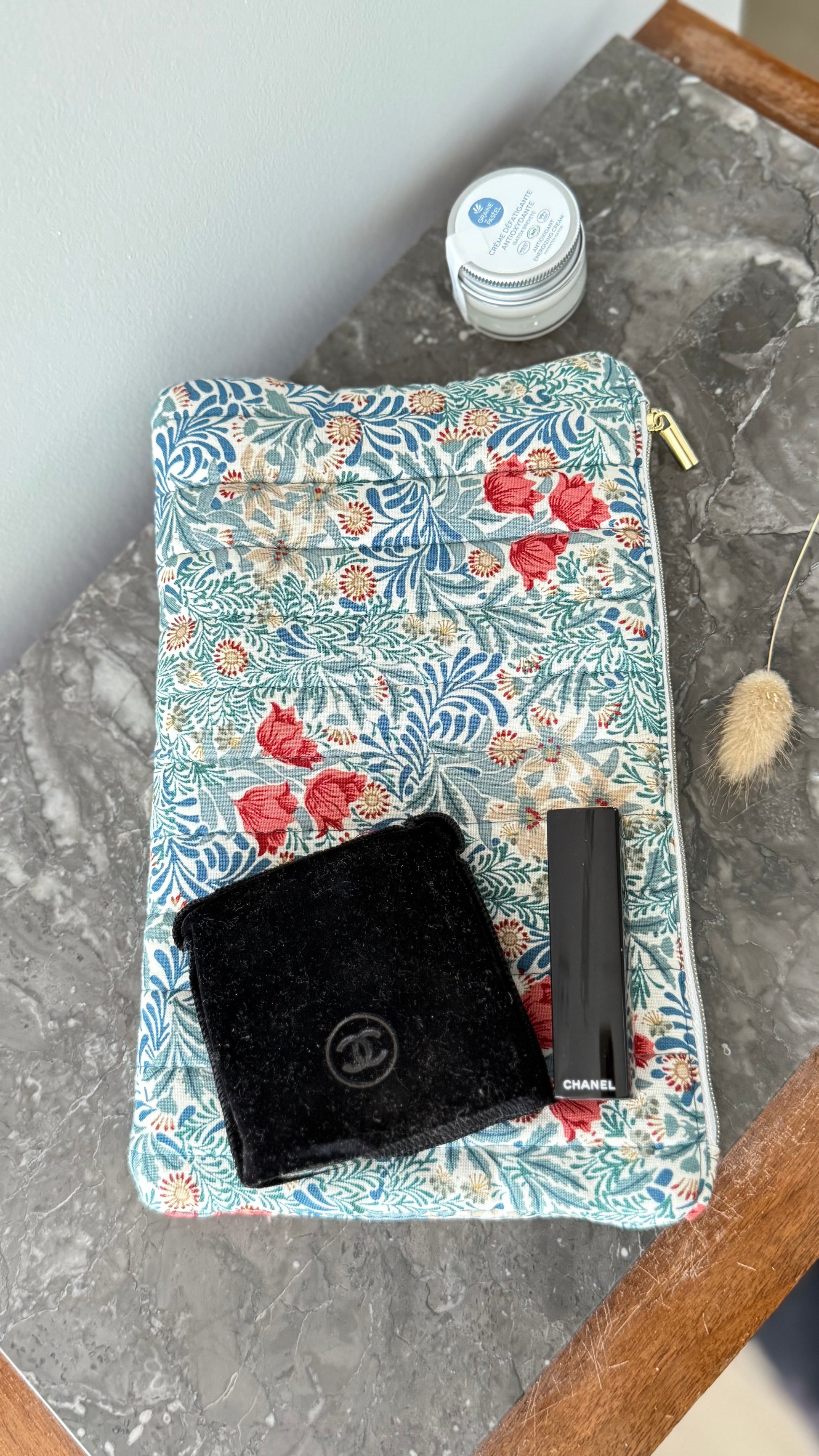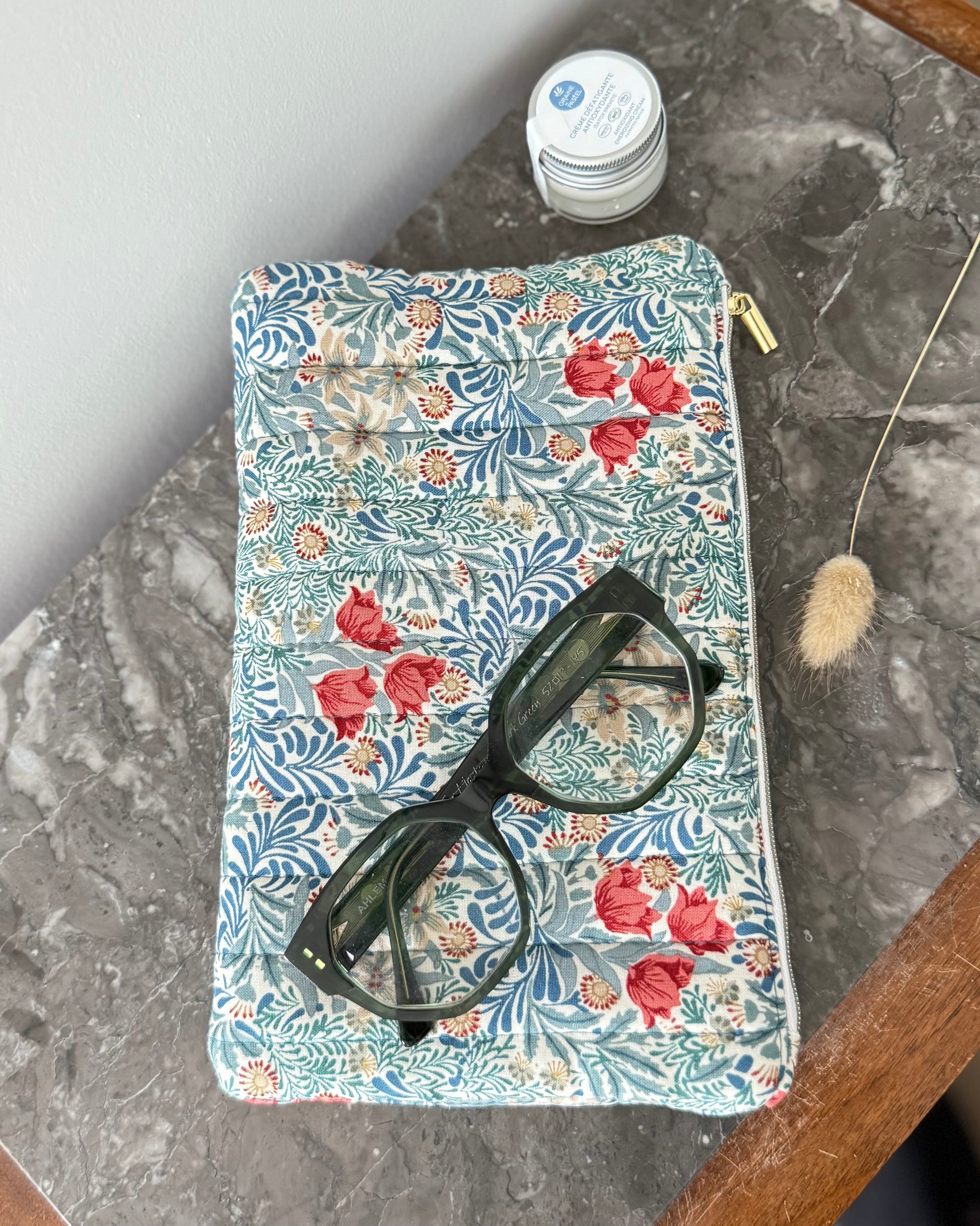 Voici la pochette plate, confectionnée avec soin dans mon atelier près de Lille. En tissu William Morris 100 % coton, elle allie style, utilité et engagement, pour vous accompagner au quotidien comme en voyage.