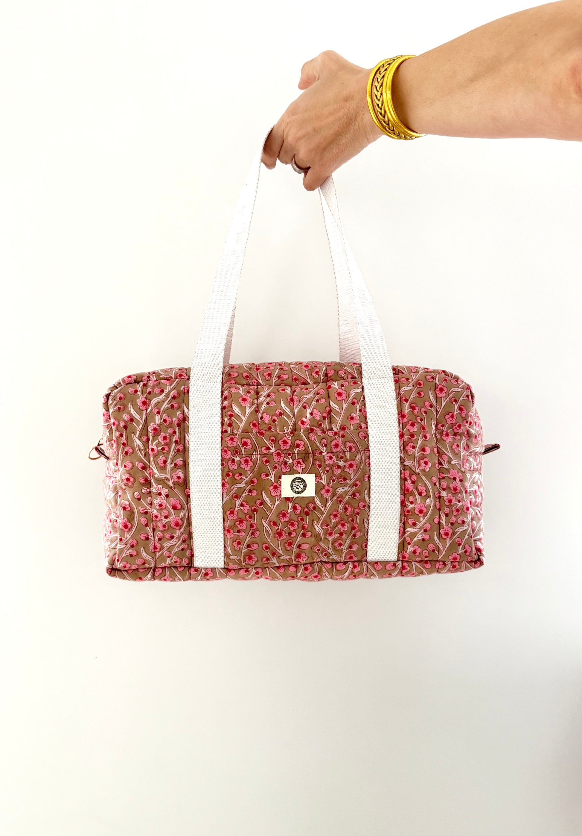Confectionné dans mon atelier proche de Lille, le sac 12h en tissu blockprint est pensé pour ceux qui bougent : nuit à l’hôtel, séance de danse, yoga, séance de Pilates.