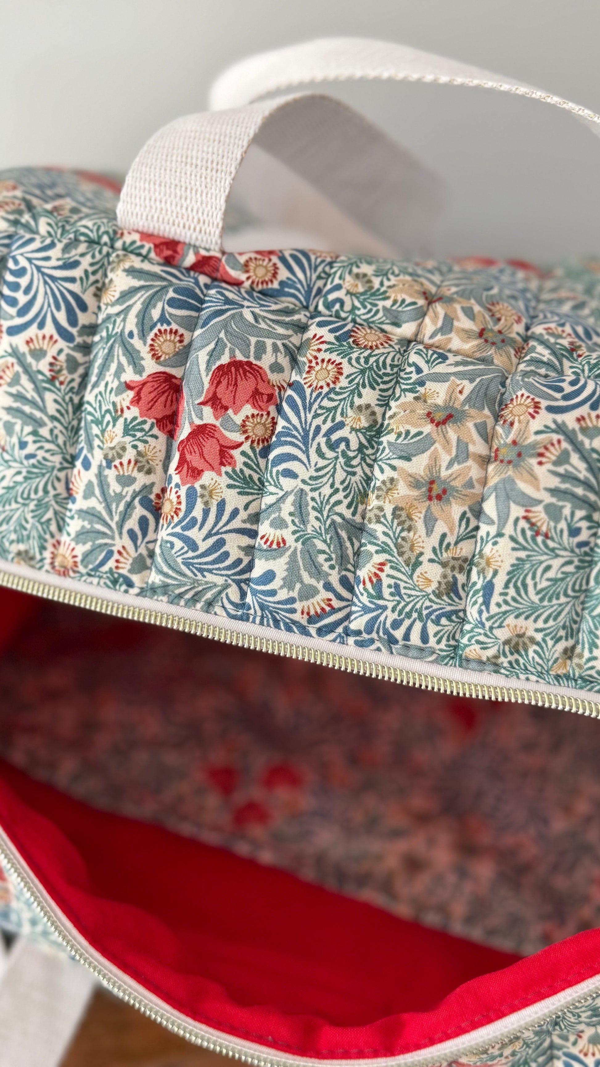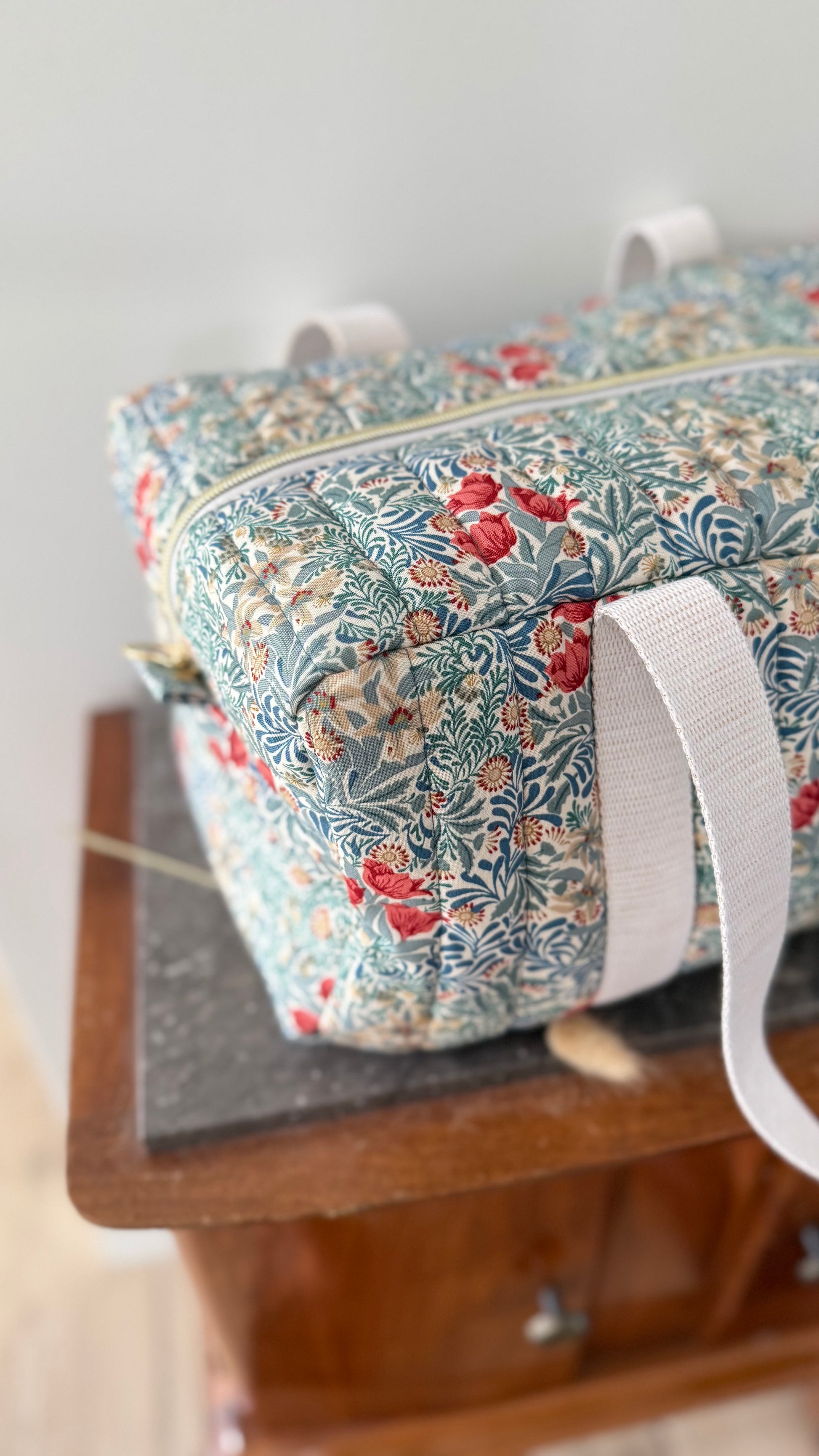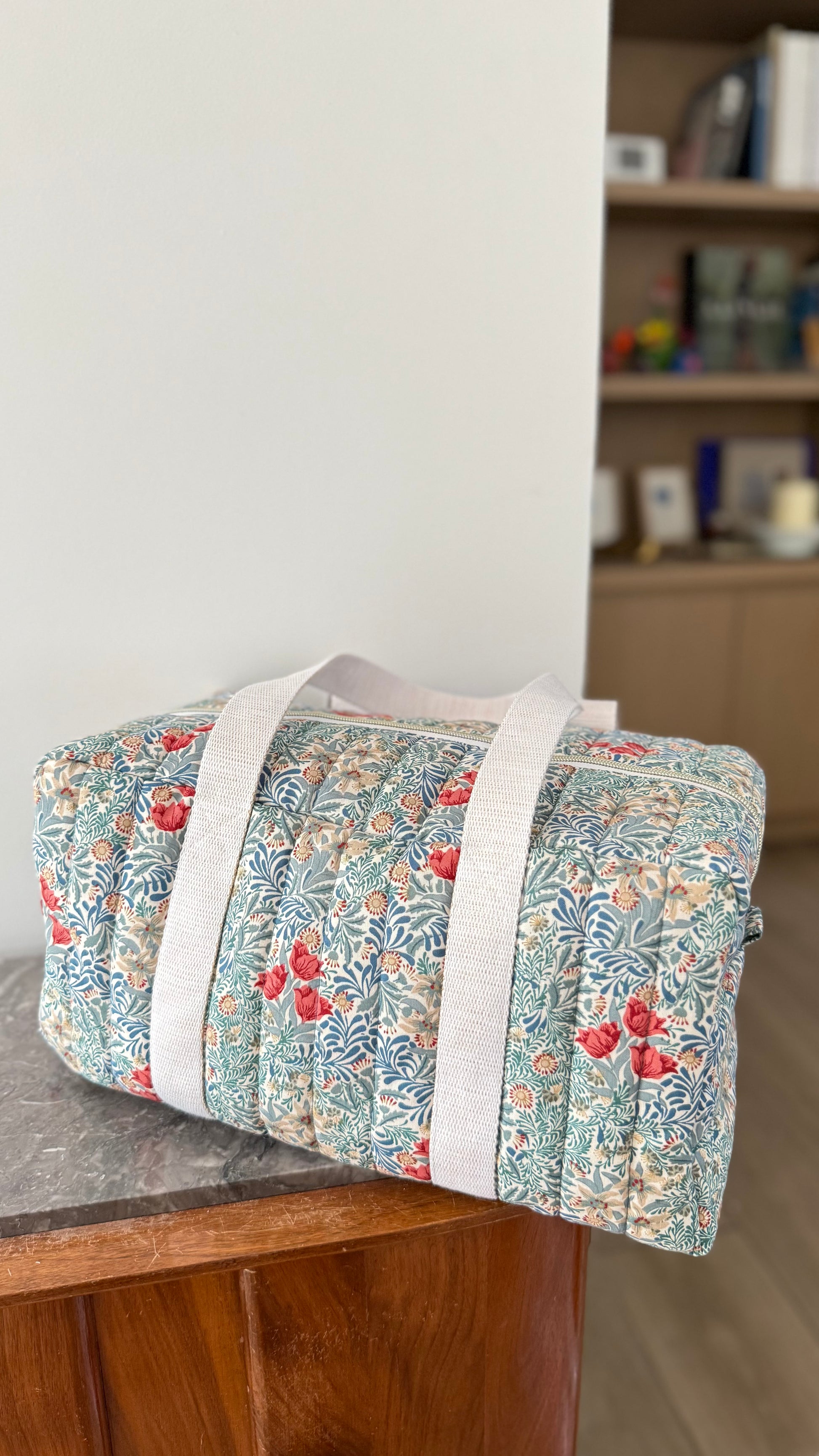 Confectionné dans mon atelier proche de Lille, le sac 12h en tissu blockprint est pensé pour ceux qui bougent : nuit à l’hôtel, séance de danse, yoga, séance de Pilates.