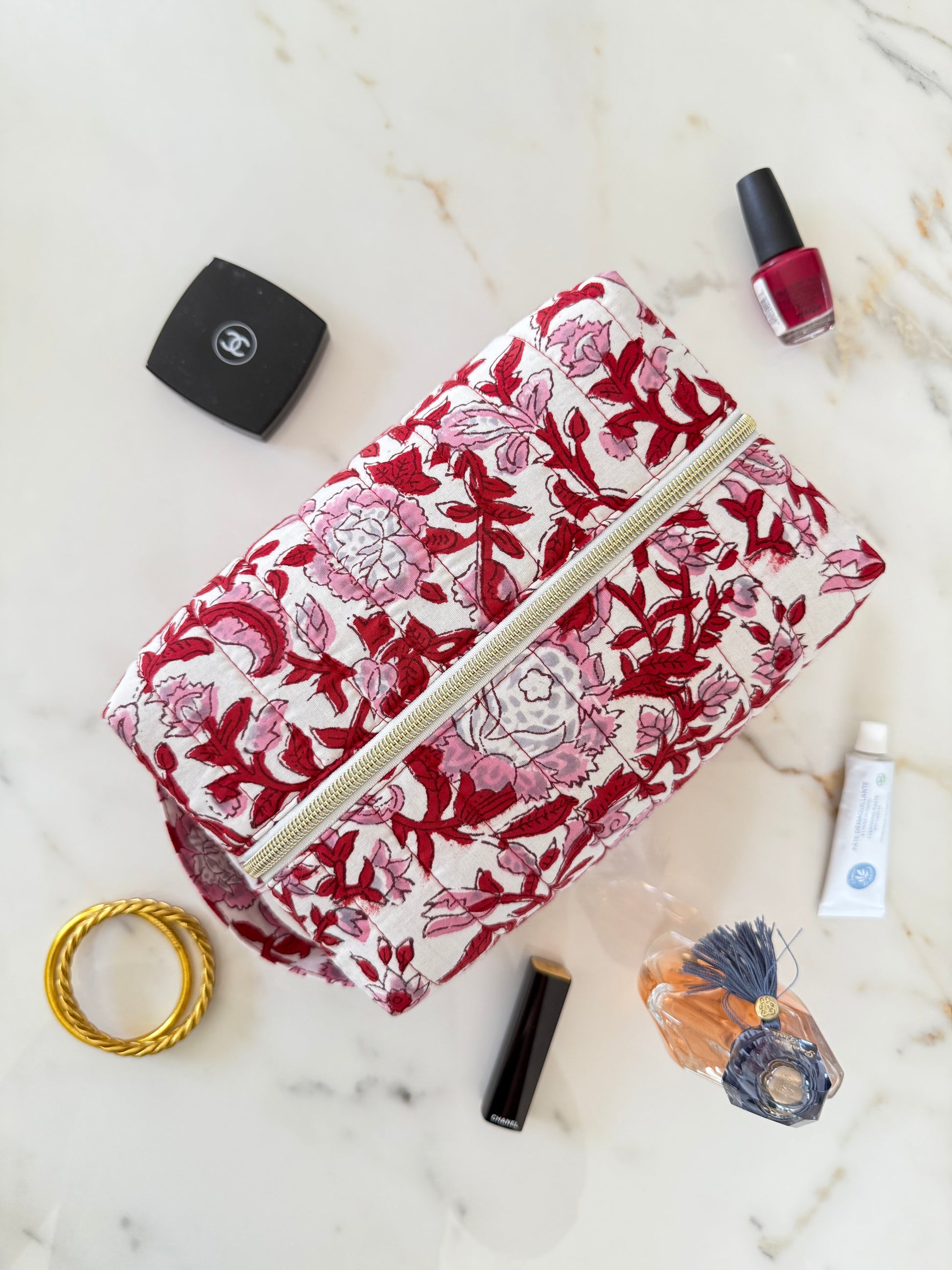Trousse de toilette en coton blockprint fleuri – Fabrication artisanale près de Lille