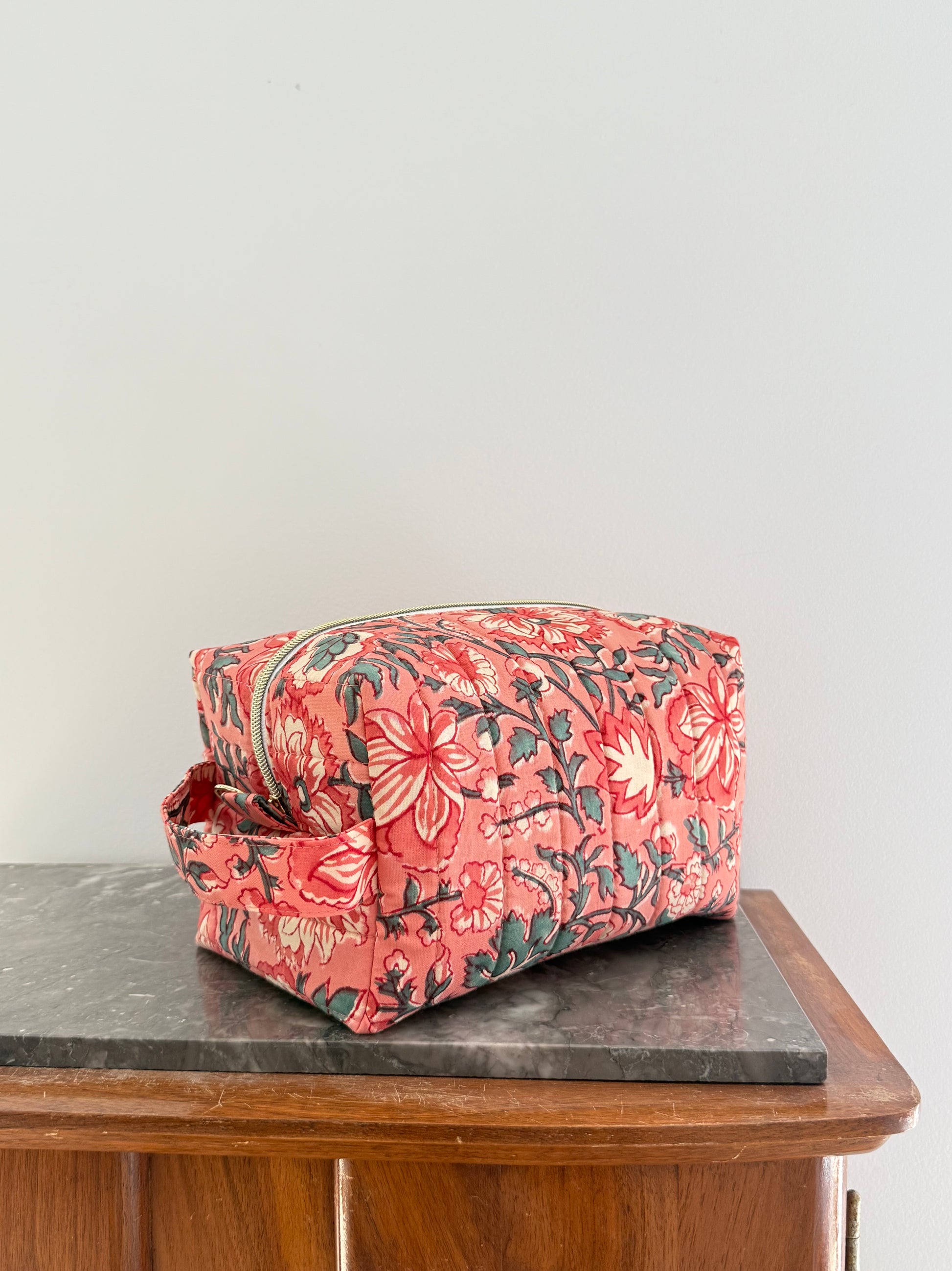 Trousse de toilette fleurie en coton blockprint – Toulouse - Fait main en France